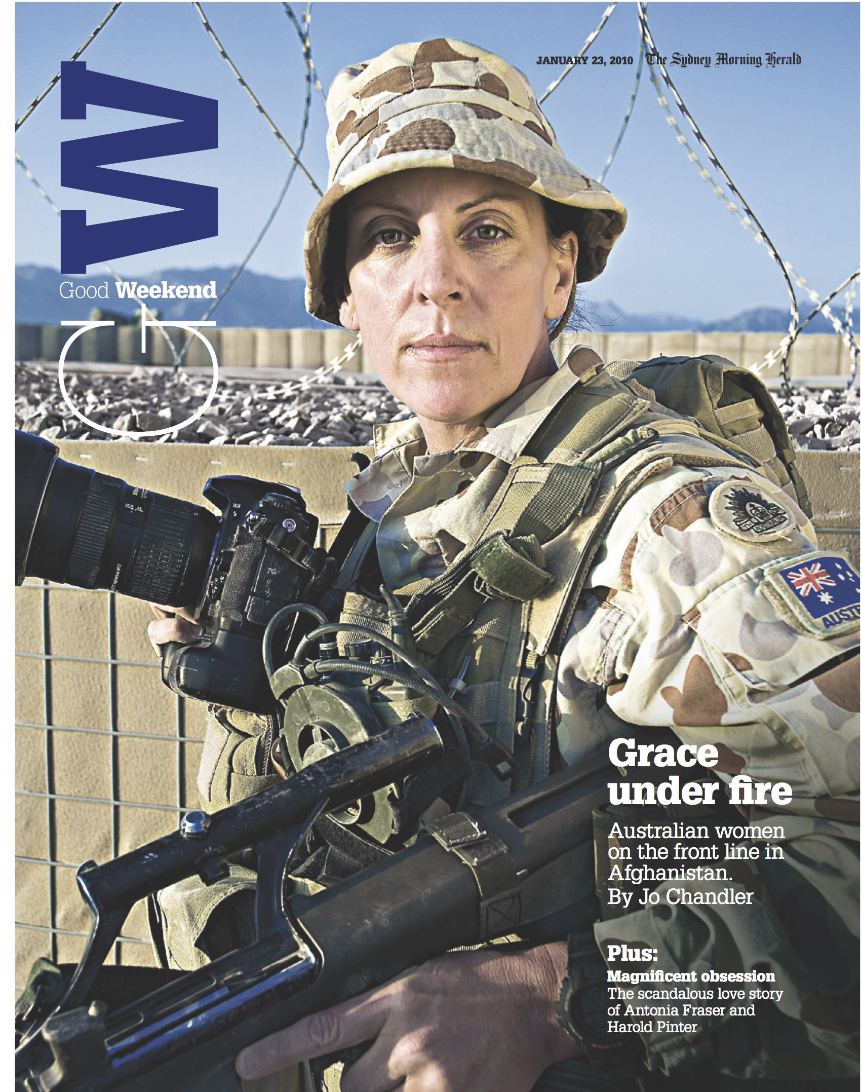 ‘The next two weeks will see Corporal Rachel Ingram spending long days in the desert encased in heavy body armour. At least the harsh Afghan summer is finally fading. At the season’s height, the sun was rising, and body armour ordered on, by 4am. “By the end of the day you’re watching the sun drop, begging it, just please, please, go down, go down,” … Sweat will set her long, dark hair like concrete under her helmet and drench her clothes – “soaked, like I’ve jumped in a pool”. She will wriggle out of her gear in the dark, wring it, wipe herself down with Wet Ones – “just the greatest invention in the world” – sleep a deep, stolen soldier’s sleep till she’s nudged awake for her turn on picket, and climb back into her still-damp kit.’
